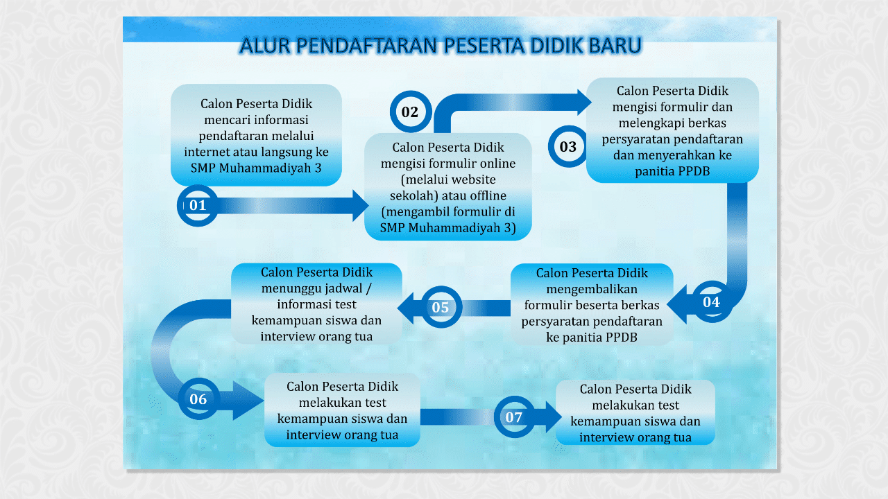 SMP MUHAMMADIYAH 3 SAMARINDA menyediakan Pendaftaran Peserta Didik Baru secara online diharapkan proses SPMB berjalan cepat dan bisa dilakukan dimanapun dan kapanpun selama sesi SPMB dibuka. Proses pendaftaran calon siswa baru bisa di akses di website SMP MUHAMMADIYAH 3 SAMARINDA.